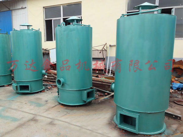 熱風爐采用了燃燒器換熱一體化,利用爐體高溫部位行間接傳熱技術,煙氣分離,熱效率達75%,升溫快、安裝方便、經久耐用。爐體采用耐火材料處理,換熱采用板式換熱器,其壽命是列管換熱器的3倍,溫度可達250攝氏度。立式熱風爐煙氣采用負壓排煙,直接進入水池過濾達到消防要求。